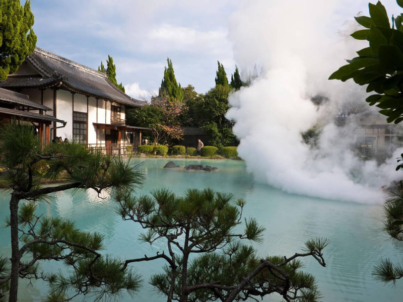 Kyushu’s Beppu: Beppu is famous for its “Hells of Beppu,” a collection of vibrant hot springs in various colors and temperatures. These unique hot springs are a visual treat and a must-see for any visitor.
